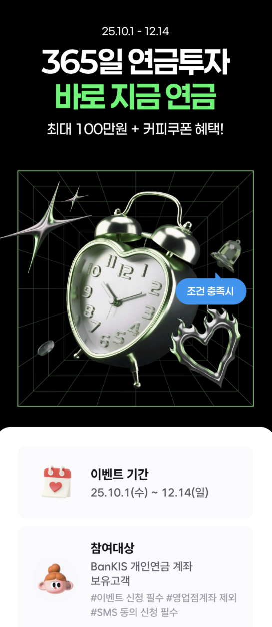 | 미래에셋증권 | 최대 100만 원 + 커피쿠폰 | 10.1~12.31 입금 + 조건 충족 시 | TDF 자동매수 추천 |